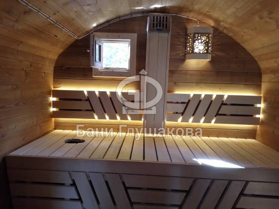Лесная «Сказка» – баня бочка из термодоски под ключ