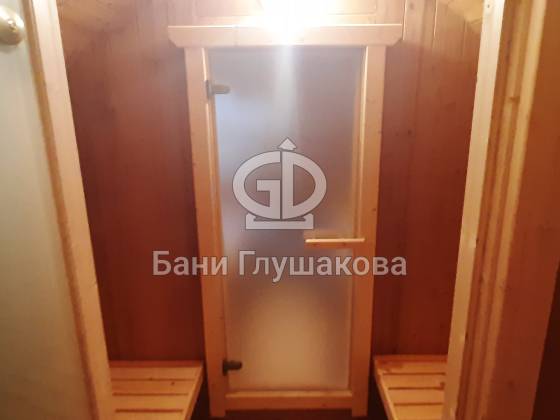 Баня состоит из трёх помещений: предбанника, помывочной и парной. У входа — уютная терраса, где приятно посидеть после парной, укрываясь от солнца или дождя.