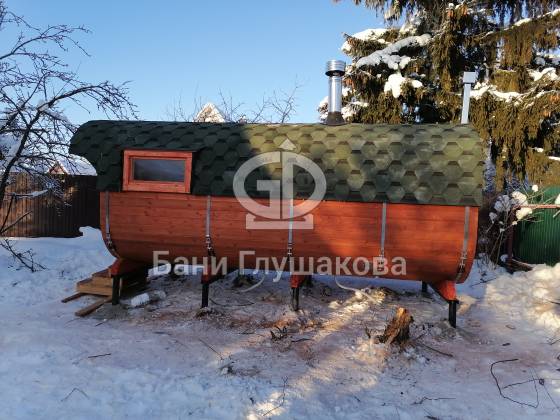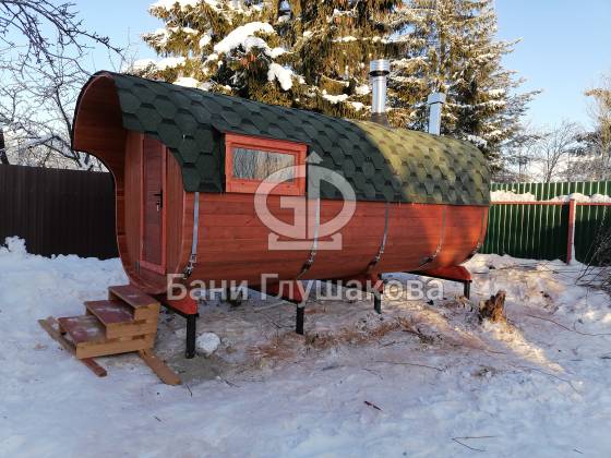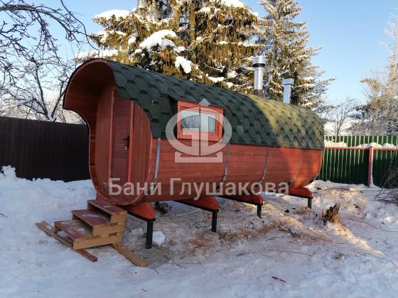 • Комплектация: Баня установлена на надежный свайный фундамент, оснащена печью с баком для воды и полностью готова к эксплуатации сразу после монтажа.