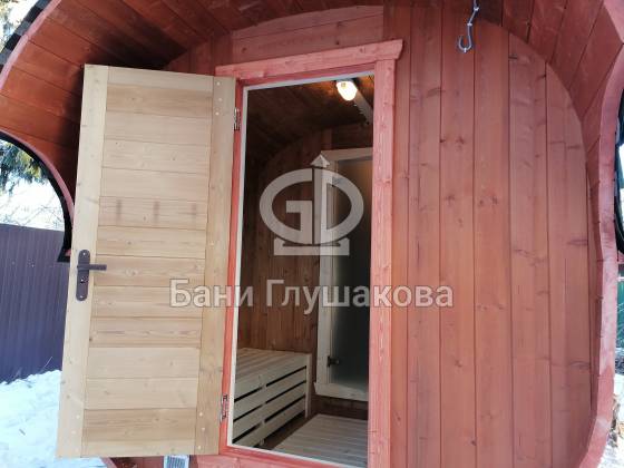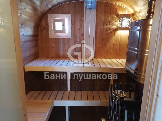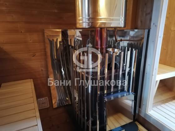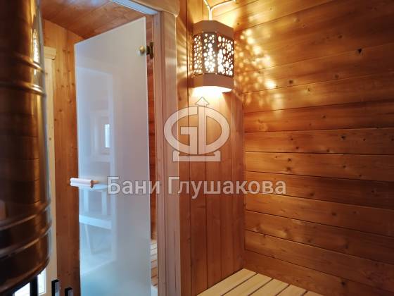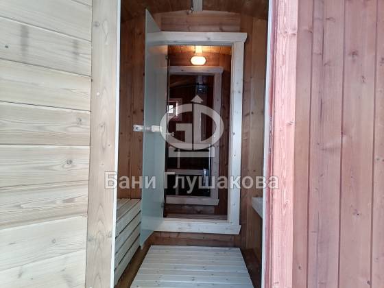 • Материал корпуса: Термодерево — это экологичность и долговечность. Оно не боится перепадов влажности и обладает низким коэффициентом теплопроводности, что позволяет бане прогреваться быстрее.
