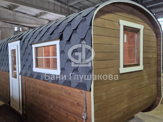 Эта «Карета» сейчас проходит финальную стадию подготовки перед отправкой, и на её примере отлично видно, почему мы так топим за термодревесину. Снаружи баня выглядит очень солидно благодаря благородному темному оттенку и четким линиям кровли, но главное здесь — стабильность самого дерева, которое не боится влаги и не «гуляет» от перепадов температур. Внутри мы постарались создать пространство, где глаз отдыхает: светлая отделка из липы контрастирует с фасадом, а панорамное остекление дверей и аккуратные окна добавляют объема и естественного света.