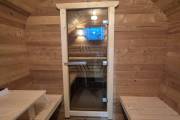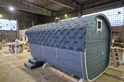 Размер — 2,4 × 4 метра, внутри — два продуманных помещения: комната отдыха и парная. Всё, как нужно, без лишнего.