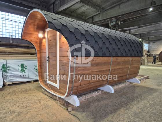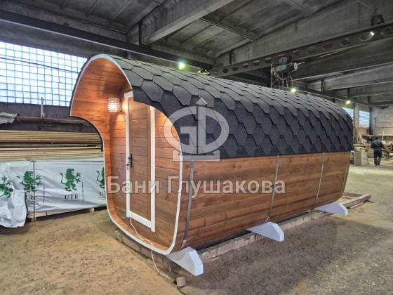 У нас можно заказать баню бочку с двумя или тремя отсеками. Маленькие бани представляют собой классические финские сауны. Парилка объёмом 6-12 куб.м. за час нагревается до 65 градусов — можно париться! В банях от 5 метров есть помывочное помещение со сливом и автономной душевой системой.