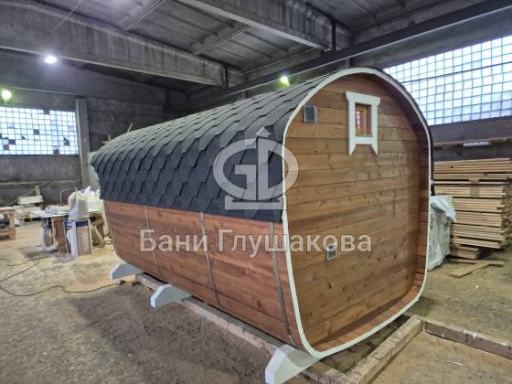 Cтроим бани бочки в цеху сразу с печкой, душевым оборудование, покраской и полной отделкой. За 5-7 дней с момента оформления заказа клиент получает полностью готовую к использованию баню под ключ.