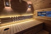 Размер универсальный – 2,4 на 6 метров, но на самом деле ограничений по размеру у бань такого типа нет – по запросу разработаем проект под ваши нужды.