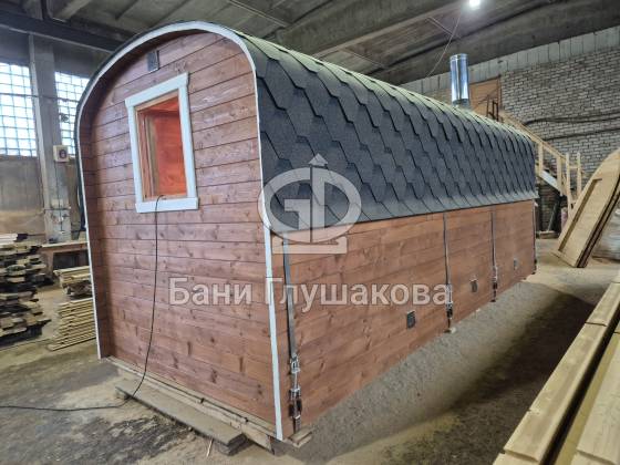 Баня «Буханочка» из бочковой термодоски размером 4х5 метров — это компактное, но полностью функциональное решение для тех, кто ценит практичность, стиль и уют. Модель объединяет все основные помещения, необходимые для комфортного отдыха, при этом занимает минимум места на участке.
