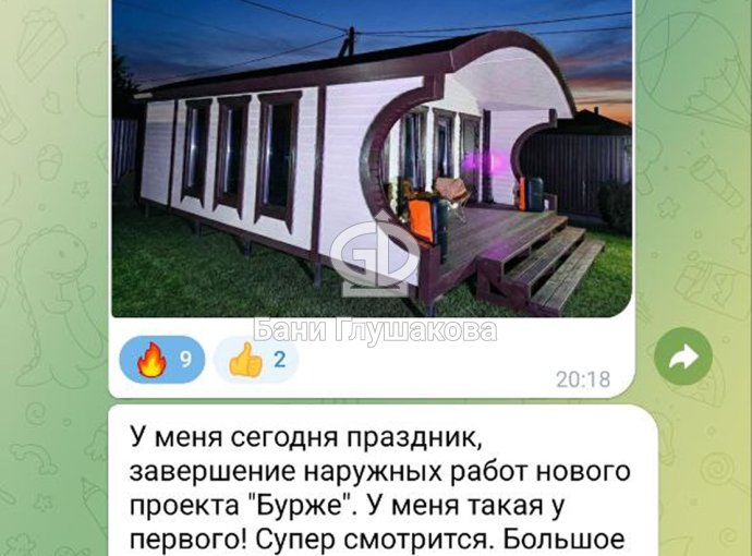 * Внимание! В характеристиках и опциях указана нестандартная комплектация бани. Вы можете заказать повтор или выбрать доп.опции для формирования собственной комплектации.