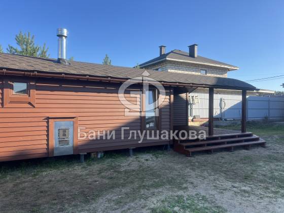 Размер объекта — 5,3 × 8 метров. Просторная терраса 2,4 × 5,3 метра отлично подойдёт для летнего отдыха или установки купели. Внутри всё, что нужно для комфортного времяпрепровождения: большая комната отдыха, полноценная парная, душевая и санузел, совмещённый с бойлерной. Утепление, вентиляция, материалы и отделка — всё продумано.
