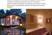 Сборка по каркасному типу из отсортированной, хорошо высушенной доски. Усадка минимальна. Все наши бани строятся под ключ с полной отделкой, установкой печного и душевого оборудования, электропроводкой.