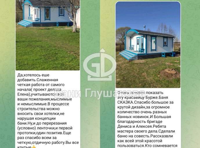 * Внимание! В характеристиках и опциях указана нестандартная комплектация бани. Вы можете заказать повтор или выбрать доп.опции для формирования собственной комплектации.
