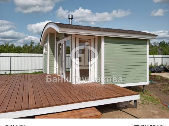 Гибрид «Кареты» и «Буханочки» из одного из лучших на рынке материалов – термированной бочковой доски, – и с утеплённым герметичным полом.