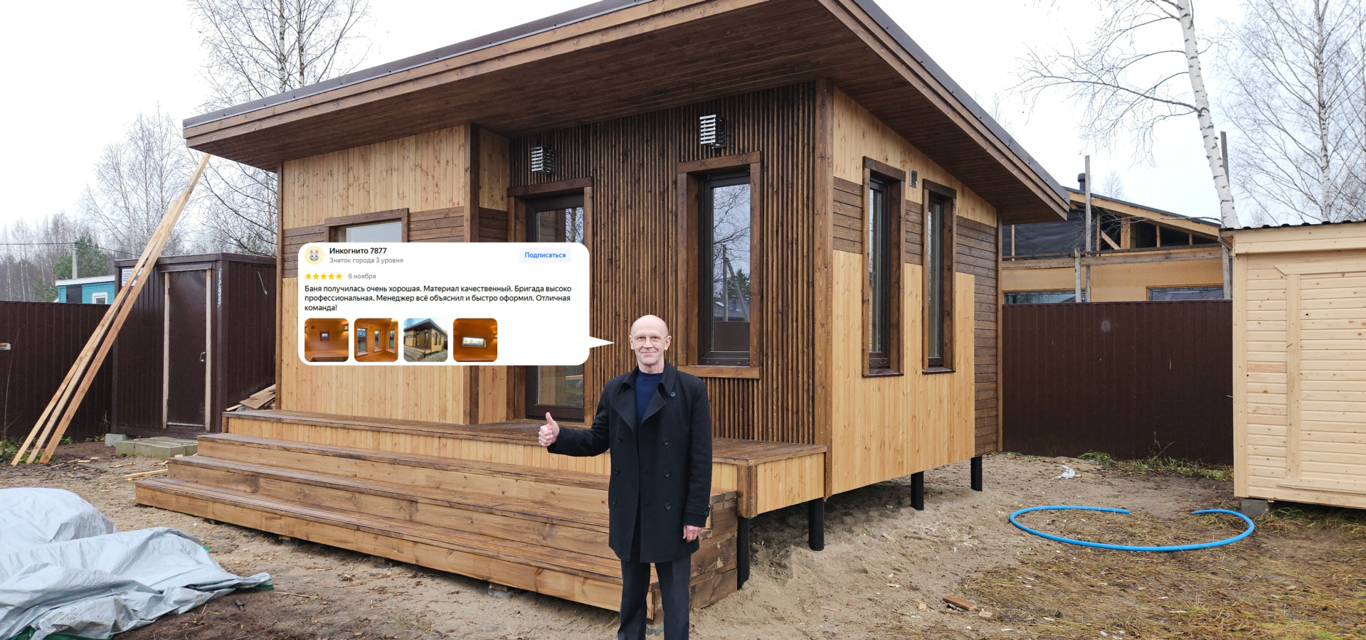 В зависимости от размеров бани сборка осуществляется либо в заводских условиях, либо на участке клиента.