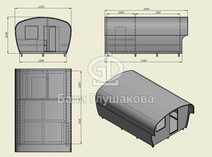 На первую баню этого типа мы предлагаем особые условия и значительную скидку — в обмен на возможность снять фото и видео готового объекта.